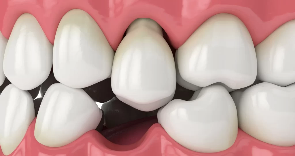 Một răng mất đi sẽ khiến các răng còn lại dễ bị xô lệch, ảnh hưởng đến khớp cắn. Các tình trạng thường gặp như: